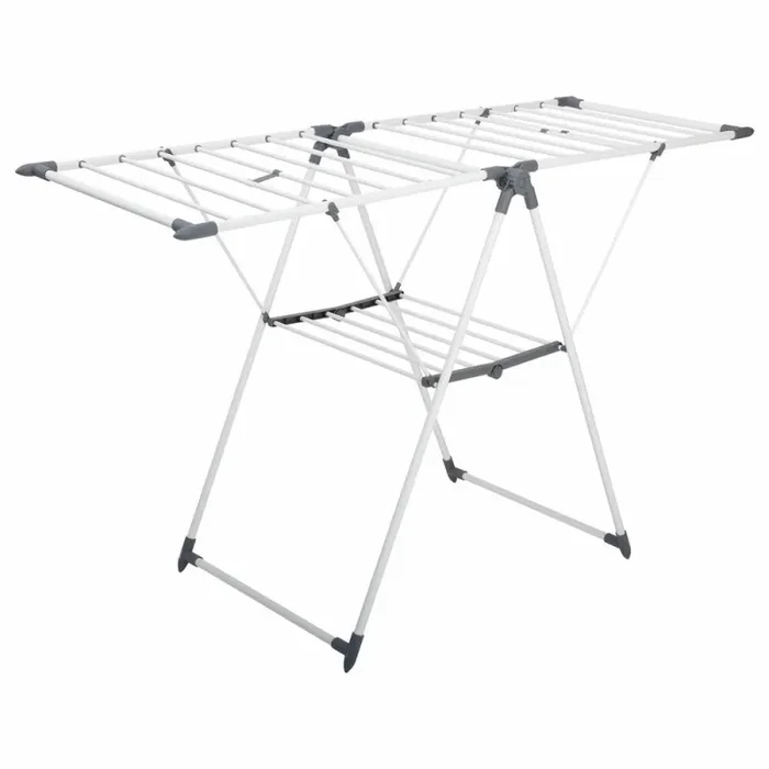 Mit 15 Metern Leinenlänge bietet der Klapp-Wäscheständer Sinai genau die richtige Trockenfläche für 1-2 Maschinen Wäsche. Durch die Verteilung auf 2 Etagen können große und kleine Kleidungsstücke optimal aufgehängt werden. Nach Gebrauch kann der Ständer einfach platzsparend zusammengefaltet werden.