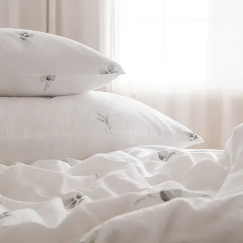 Alva holt die Natur direkt ins Schlafzimmer und lädt zum Träumen ein. Die grünen Blätter auf weissem Grund schaffen eine friedliche und entspannende Atmosphäre.
