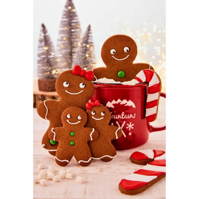 Wir können Ihnen gar nicht genau sagen, wann der Lebkuchenmann in die Weihnachtsbäckerei einzog und sich dort häuslich einrichtete, aber er ist von dort nicht mehr wegzudenken. Ob als Lebkuchen oder Mürbeteigplätzchen, die Kinder lieben ihn und er lädt auch dazu ein, ihn nach dem Backen noch reichlich zu verzieren. Jetzt endlich bekommt er auch Gesellschaft von der Gingerwoman. Lange hat er auf die richtige Lebkuchenfrau gewartet und nun versüßen Sie den Weihnachts- oder Kaffeetisch.