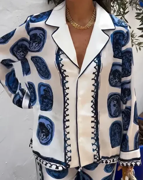 Farbenfrohes Sommerset Caroline mit griechischem Flair, ideal für einen stilvollen und bequemen Sommerlook.