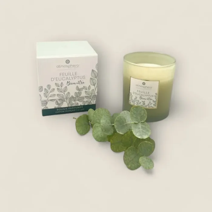 Entdecke die wohltuende Wirkung unserer Duftkerze mit Eukalyptusduft von Atmosphera Créateur d’intérieur®.
