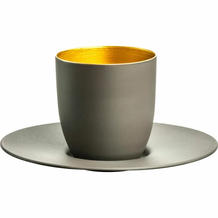 • 1 EISCH Espresso-Glas mit Untersetzer Cosmo Collect mocca, innen zart goldschimmernd, außen matt warm-braun
