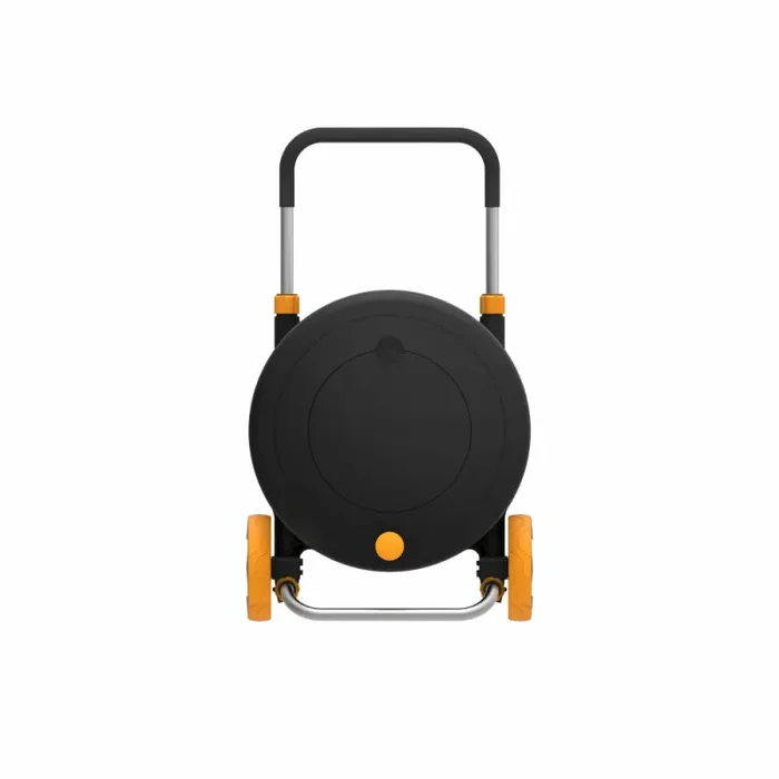 Fiskars Waterwheel L mit 30 m Schlauch, Schlauchrolle, Gartenschlauchbehälter, Kunststoff, Schwarz, Orange, 1023644