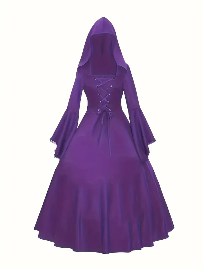 Dieses Hexenkleid ist nicht nur ein Highlight für Halloween, sondern auch für Theaterstücke, Rollenspiele oder einfach für alle, die ihren Look mit einer düsteren, geheimnisvollen Note versehen möchten. Die Kapuze bietet zusätzlich einen Hauch von Geheimnis und vervollständigt den Look auf perfekte Weise.
