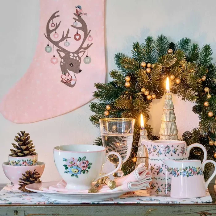 Serie: Madison • Fassungsvermögen: 130 ml • Maße: H 6,5 cm, Ø 6,8 cm • Farbe: Pastellrosa mit weißem Band und Blumenmuster • Vielseitig einsetzbar für Getränke und Desserts