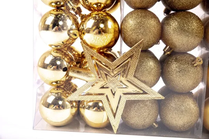 Große Weihnachtskugeln Set 61 teilig Ø 6 cm Gold inklusive Sternspitze Weihnachtsbaumschmuck