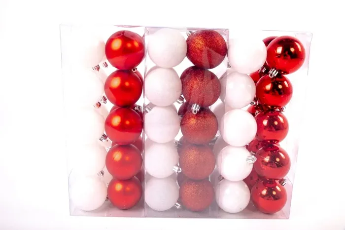 61 teiliges Weihnachtskugel-Set mit drei verschiedenen Kugelarten und dem passenden Stern für den Weihnachtsbaum. Darin enthalten sind glitzernde, glänzende und matte Kugeln in der Farbe Weiß und Rot. Genießen Sie die schöne Weihnachtszeit und Ihren prachtvoll geschmückten Weihnachtsbaum mit unseren passenden Christbaumkugeln. Im Set ebenfalls enthalten sind Anhänger aus Metall. So lassen sich die Weihnachtskugeln noch viel bequemer und schneller am Tannenbaum anbringen. Durch die verschiedenen Kugelarten spiegelt sich das Licht Ihres Weihnachtsbaums hervorragend wider. Verwandeln Sie Ihren Christbaum zum Highlight Ihrer Weihnachtsdekoration mit diesem wunderschönen Christbaumschmuck. Anders als bei den meisten 100er Sets bekommen Sie hier ausschließlich große Kugeln mit einem Durchmesser von Ø 6 cm. Somit erhalten Sie viel mehr größere Kugeln womit Ihre Weihnachtsbäume bestens geschmückt werden können. Die Sternspitze für Ihren Weihnachtsbaum rundet das Gesamtbild perfekt ab. Wir wünschen Ihnen viel Spaß beim dekorieren!