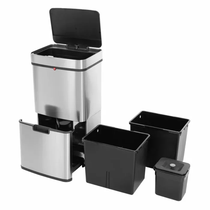 Hailo Mülltrennsystem mit Sensor Öko Vario XL, Tret-Mülleimer, Abfalltrenner, Abfalleimer, Edelstahl, 25 + 25 + 4 L, 0656-001