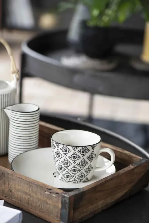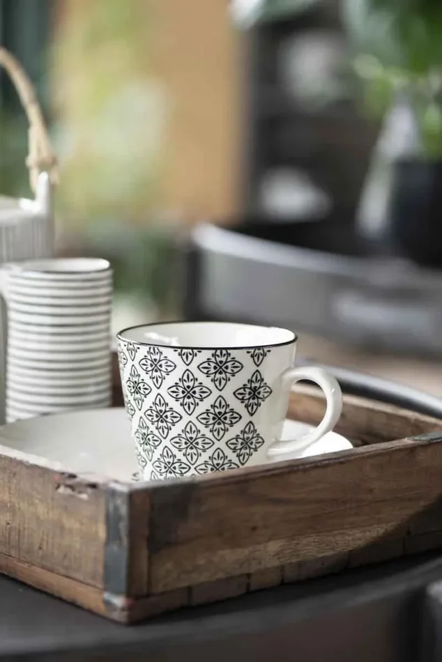 Fülle die Kiste mit Tassen, Zuckerdose und Servietten für einen schnellen Kaffee auf der Terrasse, oder arrangiere darin Kerzengläser und getrocknete Zweige für eine herbstliche Stimmung. Im Badezimmer ordnest du Parfumflakons und kleine Handtücher darauf an – schwuppdiwupp wird selbst der Alltag zum Genuss. Dank der stabilen Konstruktion kannst du sie auch als Regaleinsatz nutzen, um kleine Dinge ordentlich zu verstauen.
