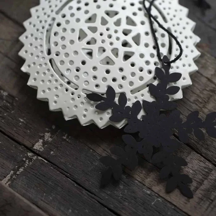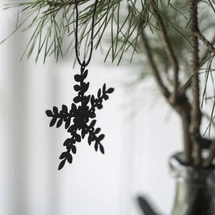 Ib Laursen – Scherenschnitt Schneekristalle mit Blättern schwarz