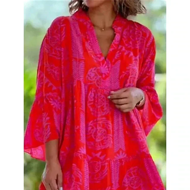 Steigern Sie Ihre Sommergarderobe mit unserem Blumen-Midi-Kleid, das perfekt für alle Frauen ist, die Stil und Komfort schätzen. Dieses Kleid ist mit den neuesten Trends von 2023 im Kopf entworfen worden, um sicherzustellen, dass Sie schick und modern aussehen, egal ob Sie ausgehen, Ihre täglichen Aktivitäten genießen oder in den Urlaub fahren. Die wunderschöne Mischung aus geometrischem und floralem Druck verleiht diesem Kleid eine einzigartige Attraktivität, während der V-Ausschnitt und die 3/4 Ärmel einen Hauch von Eleganz hinzufügen. Das Kleid besteht aus hochwertigem Polyester-Stoff, der ein weiches und bequemes Trageerlebnis bietet.