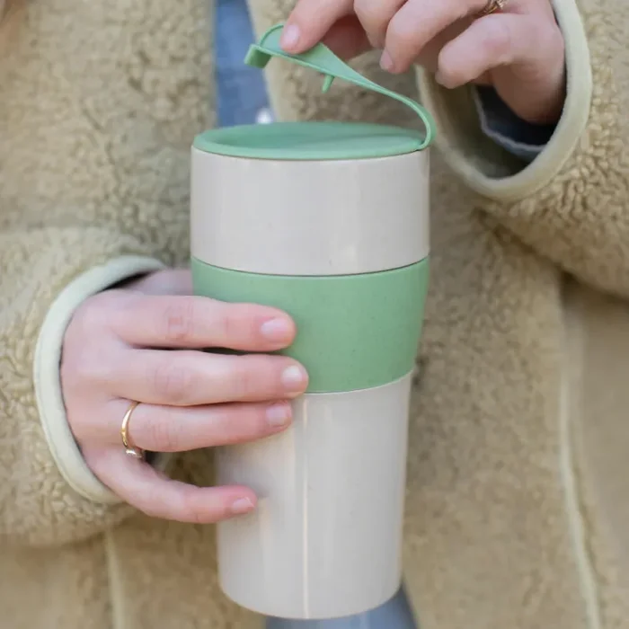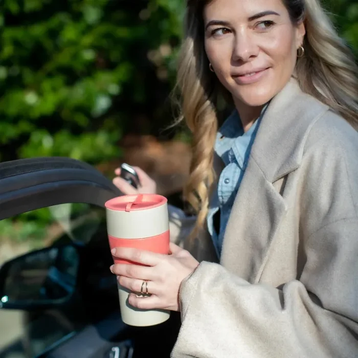 AROMA TO GO XL macht sich als tägliche Starthilfe schnell unentbehrlich. Dank flexibler Lamellen sitzt der Deckel wie angegossen auf der Tasse und ermöglicht komfortablen Trinkgenuss. Der hohe Becher ist leicht und unzerbrechlich und liegt mit seiner schlanken Form angenehm in der Hand. Auch im Individualverkehr ist er ein Renner, denn AROMA TO GO XL passt in alle gängigen Getränkehalter im Auto. Besonderes Extra ist der innovative Deckelverschluss. Die Lasche deckt Trinköffnung und Luftloch zuverlässig ab und so kann unterwegs nichts versehentlich auf die Kleidung tropfen.