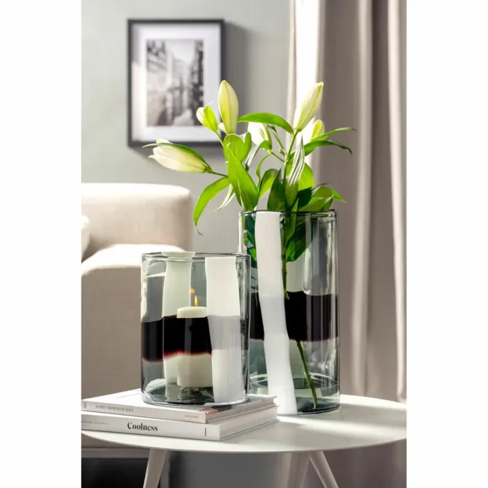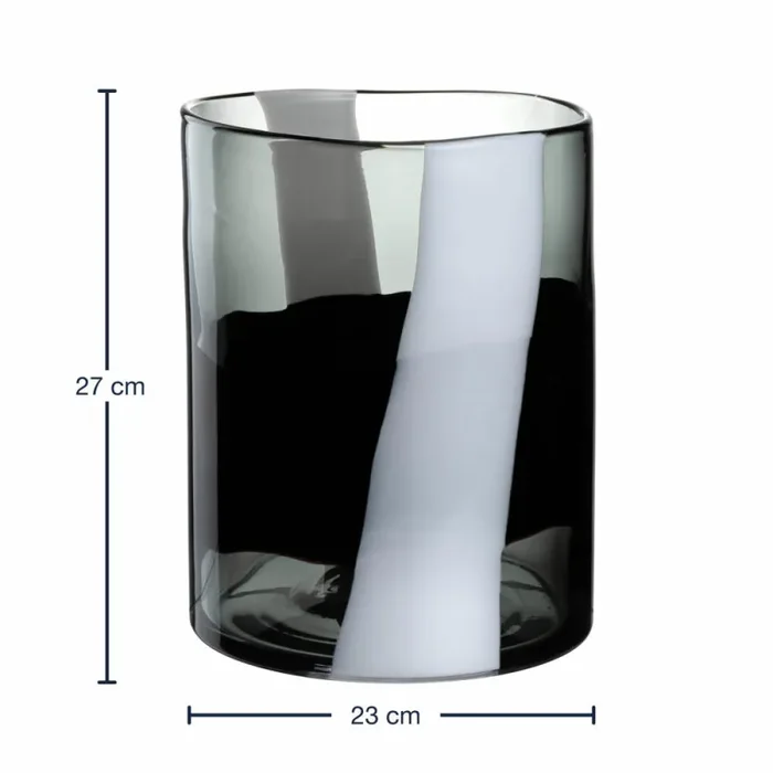 Entdecke die faszinierende Vase BANDA NERA! Handgearbeitetes Glas verschmilzt hier zu einem Kunstwerk, das deine Sinne verführt. Ob mit üppigen Blumen oder allein, sie ist stets ein Blickfang. Doch BANDA NERA ist mehr als eine Vase – sie ist eine leidenschaftliche Love-Affäre mit Ästhetik und Handwerkskunst. Jede Vase ist ein Unikat, einzigartig wie du. Tauche ein in die Welt des Designs und der Eleganz. Verleihe deinem Zuhause mit BANDA NERA einen Hauch von Exklusivität. Nutze sie auch als Windlicht und lass ihr warmes Licht deine Räume erhellen. Gönn dir das Besondere!
