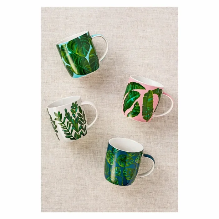Grün ist die Farbe der Gesundheit und die steckt in ganz vielen Blättern – und vielleicht ja auch in diesem Becher-Set? Genießen Sie Wellness-Tees, koffeinhaltige Fitmacher oder süße Seelentröster aus dem Henkelbecher-Duo der neuen Kollektion Haven und erfreuen sich dabei nicht nur am guten Geschmack, sondern auch an dem pflanzenstarken Design der üppigen Bananenblätter auf pinkem Grund.