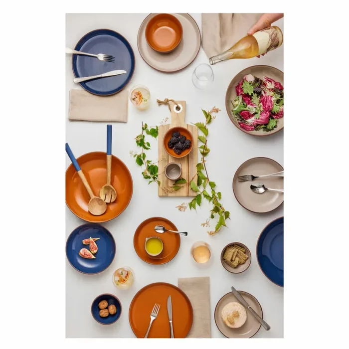 Die mediterran inspirierte Kollektion Sienna wirft sich für Sie in Schale und tischt neben diversen Tellern mit einer Reihe von verschieden großen Schüsseln richtig auf. In dieser mittelgroßen Schale stecken nicht nur wundervolle Erinnerungen an Sommer, Sonne und Meer – sie eignet sich perfekt, um kleine Köstlichkeiten zu servieren, vom bunten Salat über frisches Obst und knackiges Gemüse bis hin zu leckeren Toppings fürs Menü. Tiefes Blau kleidet diese Schale aus und setzt einen elegant glänzenden Kontrast zum rauen Flair der natürlich braunen Tonoberfläche.