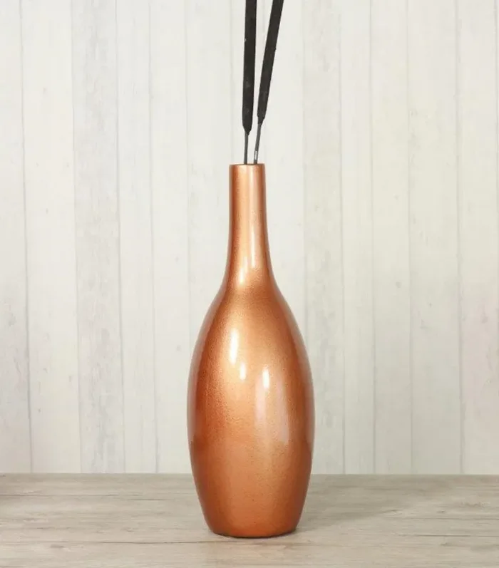 Moderne Dekovase Blumenvase Flaschenvase Vase aus Keramik kupfer gold 15×42 cm