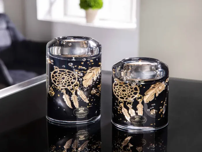 Dieser wunderschöne Teelichthalter ist ein echter Blickfang und verleiht Ihren Räumen oder Ihrer Hochzeit oder Event eine elegante und luxuriöse Atmosphäre. Das Windlicht aus Glas in der Farbe schwarz/gold besticht durch seine Eleganz und Formschönheit. Der Windlichthalter hat eine Höhe von 10,5 cm und einen Durchmesser von 7 cm. Bestückt werden, kann dieser Teelichthalter mit handelsüblichen Teelicht Kerzen. In unserem Shop finden sehr exklusiv gestaltete Teelichter, welche in Kombination mit dem Teelichthalter ein wunderschönes und exklusives Gesamtbild ergeben. Das romantische und liebevoll gestaltete Windlicht passt perfekt bei Hochzeiten, Geburtstagen, Partys, bei romantischen Verabredungen, Silvester, Weihnachten oder als Tischdekoration in Restaurants, Konditoren oder Hotels. Hersteller dieses Produkts ist die Firma Gilde/Dreamlight
