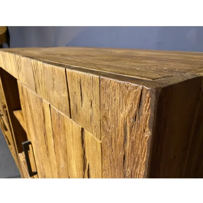 wurde in aufwendiger Handarbeit zu einem echten Blickfang gefertigt. Das massive Teakholz mit seiner außergewöhnlichen Oberfläche in Old Rustic begeistert Menschen, die das Außergewöhnliche lieben. Maja, authentisch, individuell und immer ein echtes Unikat. Die raue Oberfläche aus Stückelholz unterstreicht das einzigartige Design und setzt den rustikalen Charakter in Szene. Wertige Metallgriffe im Antiklook fügen sich harmonisch ins Gesamtbild ein und runden das gelungene Ganze perfekt ab.