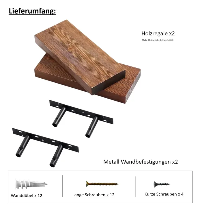 Schwebendes Wandregal Set 2 Stück aus Echtholz inkl. Bohrlochmarker 20mm – Braun