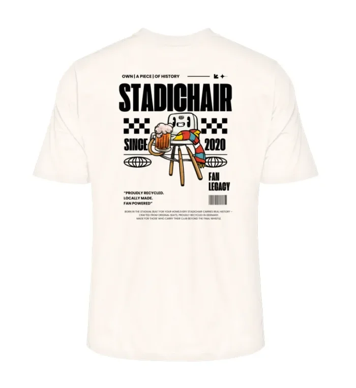 Ob am Spieltag oder im Alltag – dieses Shirt ist eine Hommage an all jene, für die der Verein mehr als nur 90 Minuten ist. „Fan powered. Proudly recycled. Locally made.” – das ist mehr als ein Statement, das ist STADICHAIR.