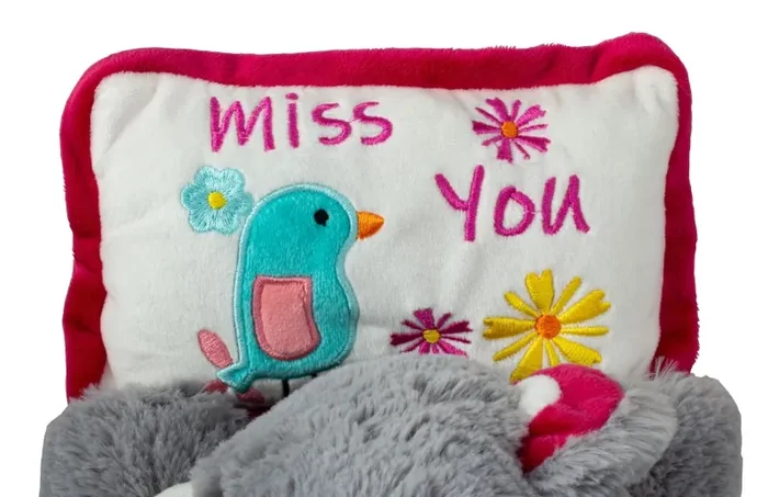 Teddybär Kuschelbär Schlafbär grau liegend auf Kissen 44 cm lang Plüschbär Kuscheltier samtig weich