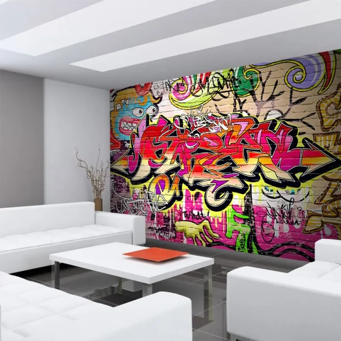Vlies Fototapete Graffiti Tapete Kinderzimmer Graffiti Streetart Graffitti Sprayer 3D bunt braun