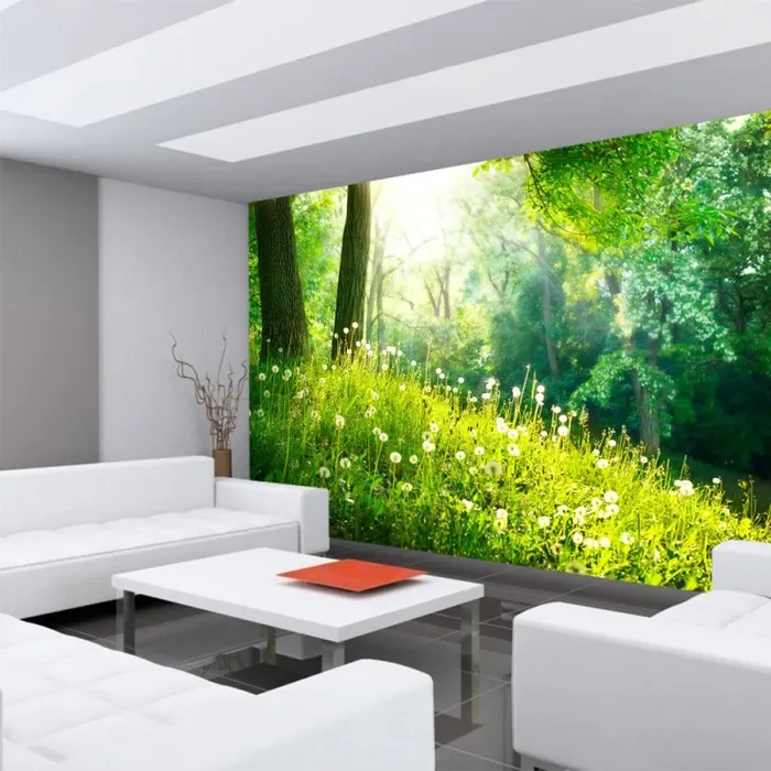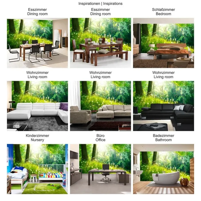 Vlies Fototapete Sunny ForestWald Tapete Wald Bäume Natur Baum grün grün