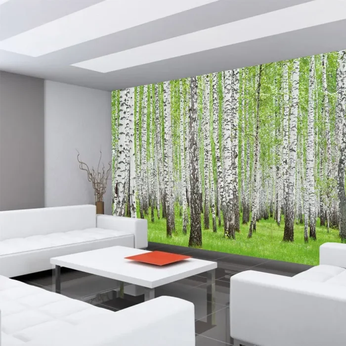 Vlies Fototapete Wald Tapete Birke Wald Bäume Natur grün weiß weiß