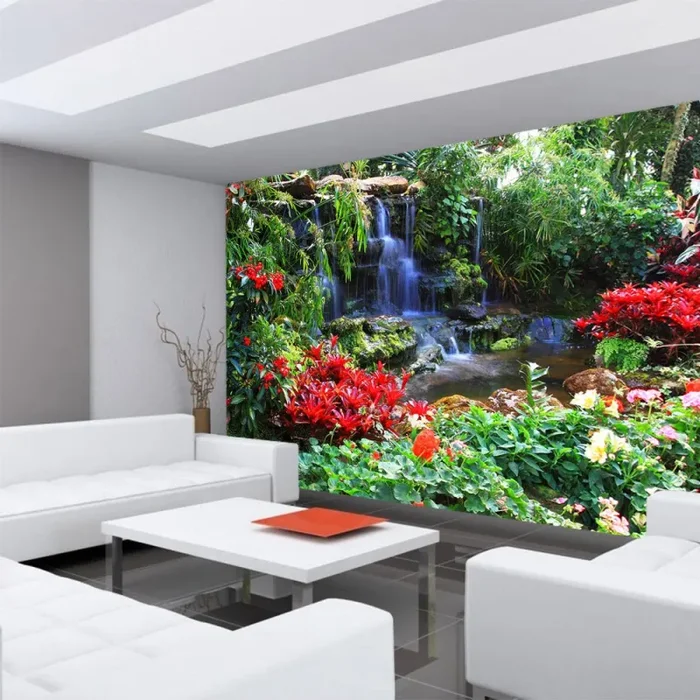 Vlies Fototapete Wald Tapete Wasserfall Urwald Pflanzen Baum Natur grün