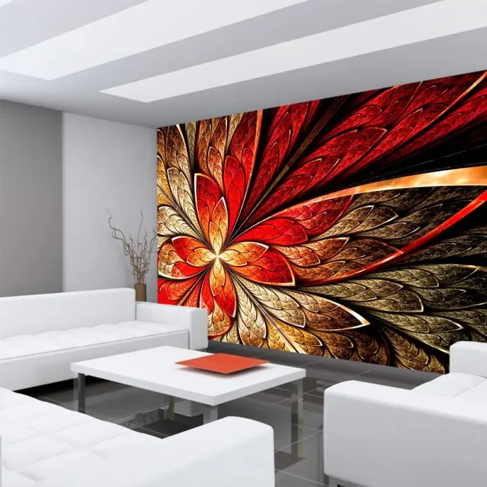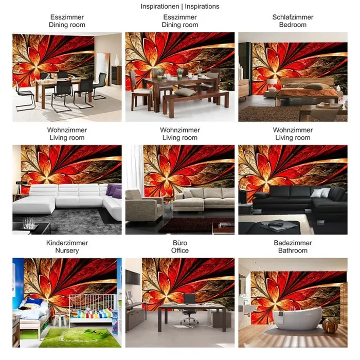 Vlies Fototapete Yellow and Red Floral Ornament Ornamente Tapete abstrakt 3D Wand Rot braun