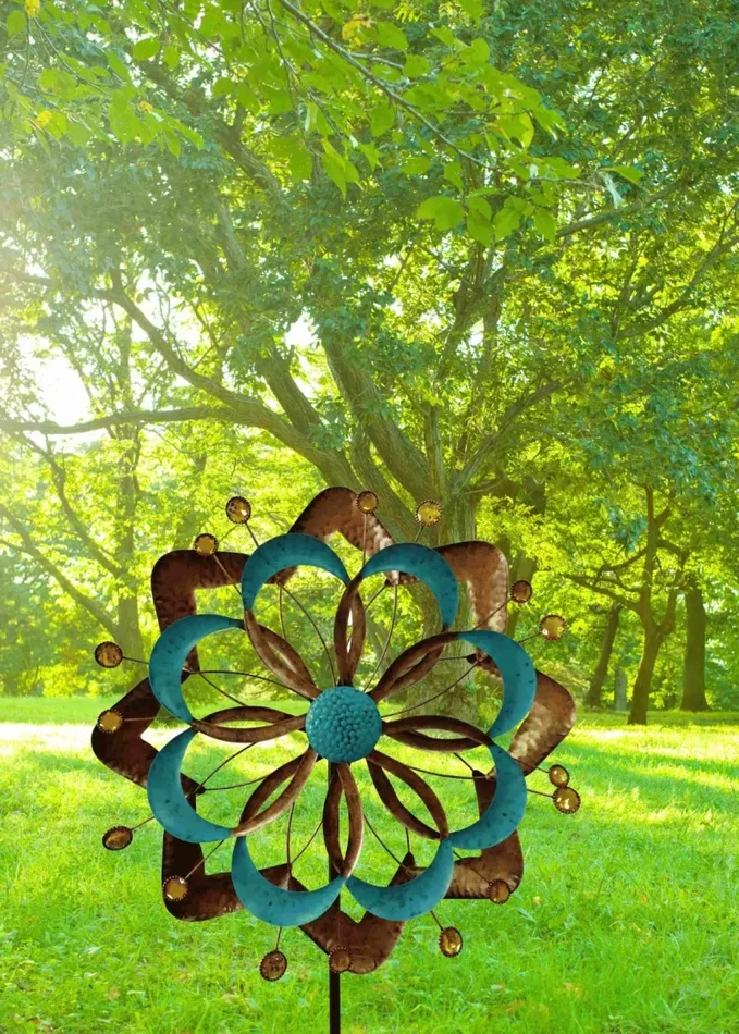 Bringen Sie Farbe und Bewegung in Ihren Garten mit unserem mehrfarbigen Windrad Windspiel aus Metall! Dieses beeindruckende Gartenaccessoire ist nicht nur ein echter Hingucker, sondern auch robust und langlebig, sodass es selbst widrigen Wetterbedingungen standhält. Mit einer Höhe von 160 cm und einem Durchmesser von 53 cm sorgt das Windrad für eine markante Präsenz und wird garantiert alle Blicke auf sich ziehen. Das kunstvoll gestaltete, mehrfarbige Design verleiht Ihrem Außenbereich eine fröhliche und lebendige Note, die jeden Garten, Hof, Terrasse oder Balkon aufwertet. Dank des praktischen Gartensteckers lässt sich das Windspiel einfach und schnell aufstellen. Sobald der Wind durch Ihren Garten weht, beginnt sich das Windrad sanft zu drehen und schafft eine entspannende und beruhigende Atmosphäre. Unser Windrad Windspiel ist die perfekte Wahl für alle, die ihre Gartendekoration auf ein neues Level heben möchten. Es eignet sich auch hervorragend als Geschenk für Gartenliebhaber und alle, die Freude an schönen und funktionalen Dekorationsartikeln haben. Eigenschaften: Hochwertiges, wetterfestes Metall Lebendiges, mehrfarbiges Design Große Abmessungen: 160 cm Höhe, 53 cm Durchmesser Einfache Installation mit Gartenstecker Beruhigende, dynamische Bewegung im Wind Ideal für Gärten, Höfe, Terrassen und Balkone Perfektes Geschenk für Gartenliebhaber Verleihen Sie Ihrem Garten einen Hauch von Magie und Bewegung mit unserem Windrad Windspiel aus Metall!