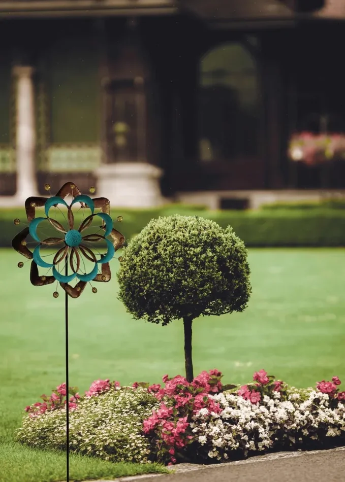 Windrad Windspiel mehrfarbig aus Metall als Gartenstecker Höhe 160 cm ⌀ 53 cm