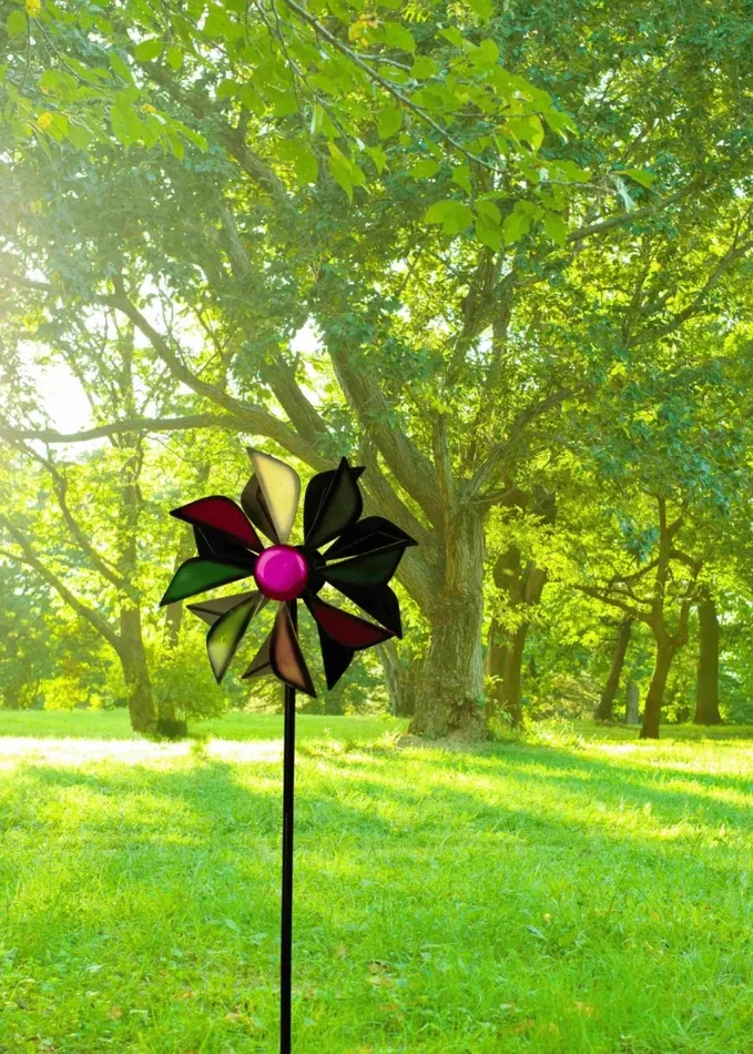Windrad Windspiel mehrfarbig aus Metall als Gartenstecker Höhe 91 cm Durchmesser 23 cm